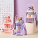 580ml Beautiful Cartoon School Kids Plastic Water Bottle Dual Straw Water Bottle with Strap