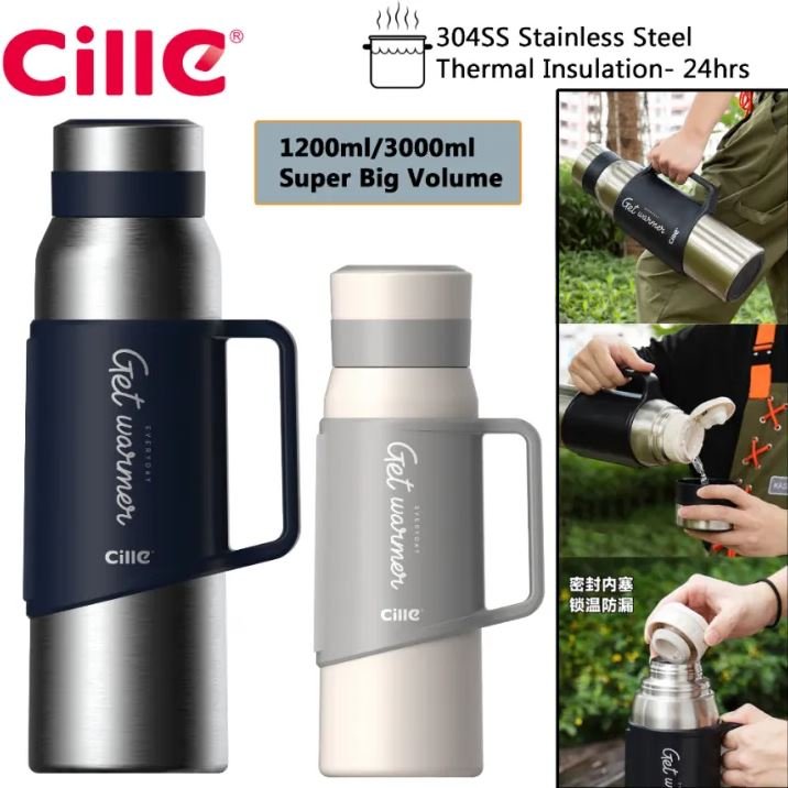 Cille 1200ml Hiking Camping Large Volume 304SS Stainless Steel Vacuum Flask Thermos Water Bottle