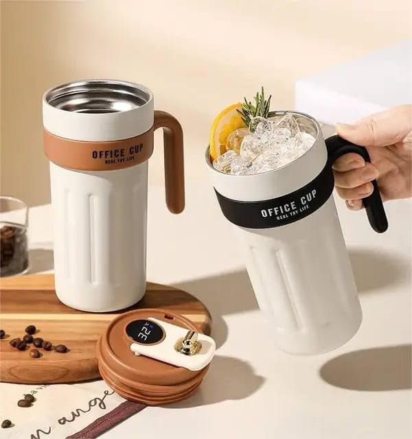 Imported 650ml SUS 316 Hot and Cold Stainless Steel Vacuum Insulated Coffee Mug with Temperature Display Portable Coffee Cups with Handgrip Double Wall Juice Coffee Cup for Girls