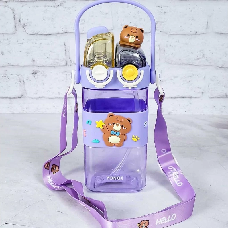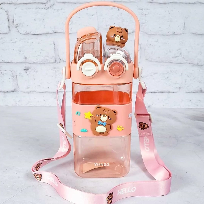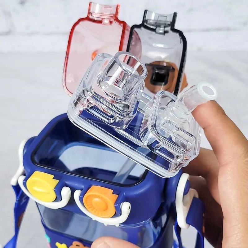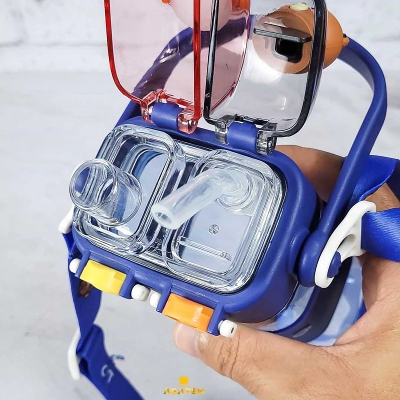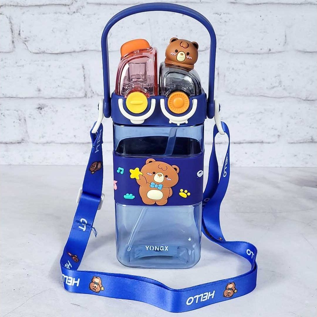 580ml Beautiful Cartoon School Kids Plastic Water Bottle Dual Straw Water Bottle with Strap