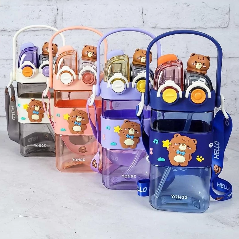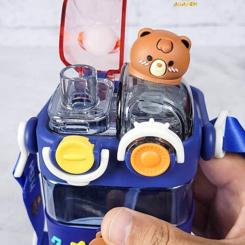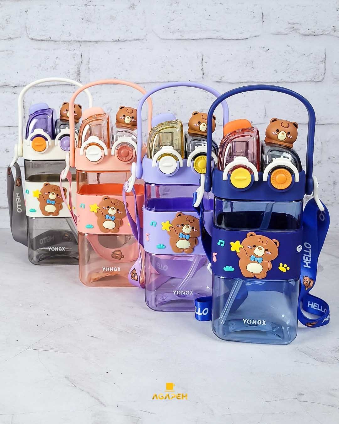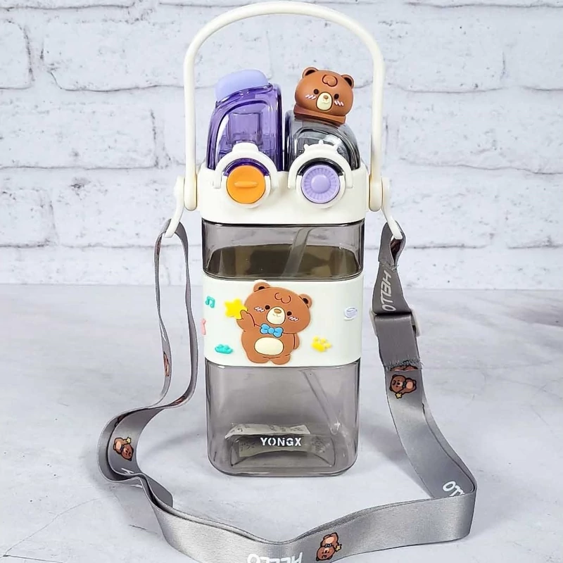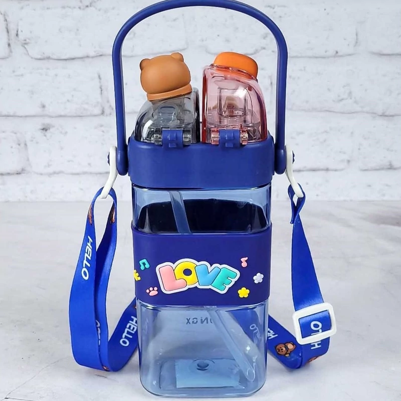 580ml Beautiful Cartoon School Kids Plastic Water Bottle Dual Straw Water Bottle with Strap