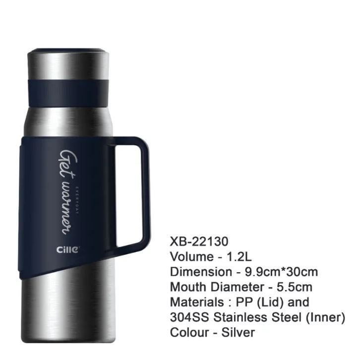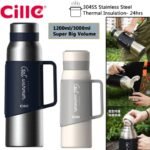 Cille 1200ml Hiking Camping Large Volume 304SS Stainless Steel Vacuum Flask Thermos Water Bottle