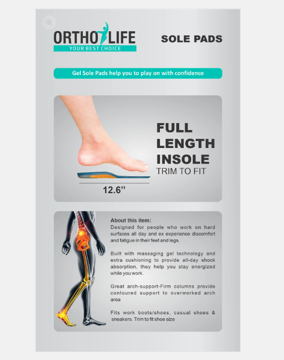 Imported Ortholife Sole Pads Active Gel Foot Pad Insole for Pain