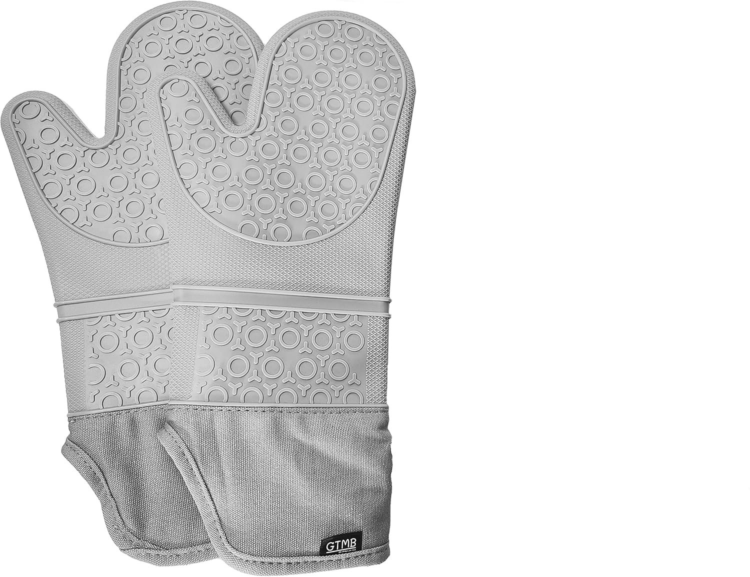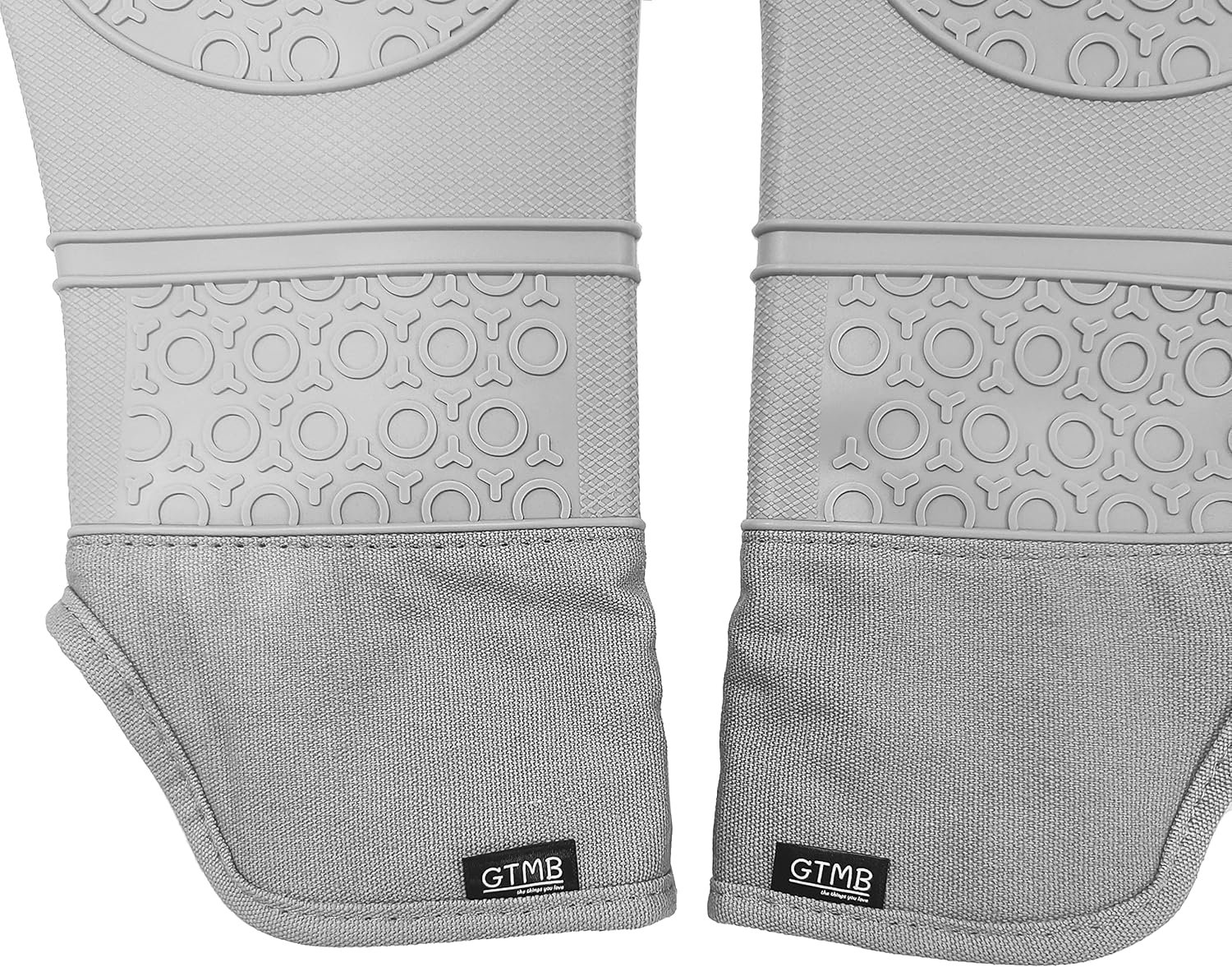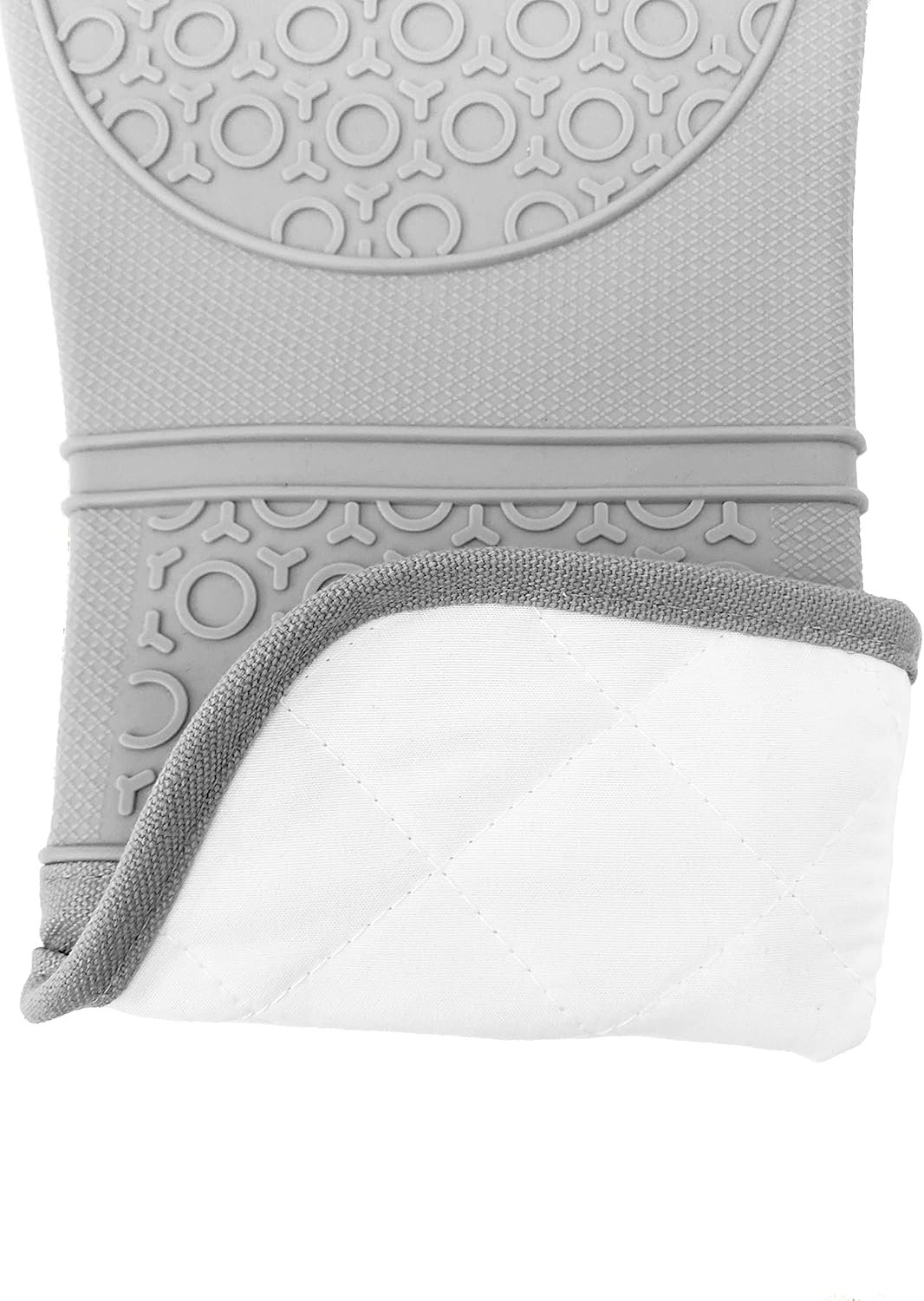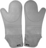 Silicone Oven Gloves Heat Resistant: Our silicone oven gloves are made of high-quality food-grade silicone with a breathable quilted cotton lining. These gloves are designed to withstand high temperatures up to 230°C/446°F, making them superior to cloth gloves when it comes to handling steam or hot items from the oven. Their long sleeve provide excellent protection for your wrists and lower arms.