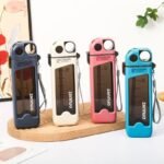Imported ZANNUO 350ML Double Layer Square Plastic Water Bottle With Straw