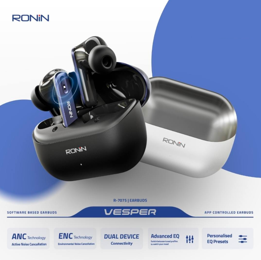 Ronin R7075 Vesper Earbuds Dual Connectivity | Gaming | ANC & ENC with One Year Brand Warranty
